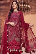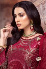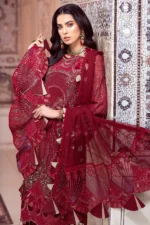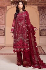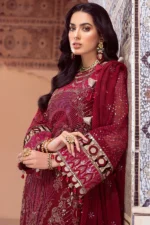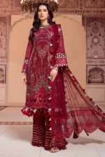 Elevate your festive wardrobe with this premium unstitched embroidered chiffon suit, where timeless beauty meets artisanal detailing. Perfect for weddings, formal gatherings, and traditional celebrations, this ensemble blends luxurious fabrics with rich embroidery for a graceful and regal look.