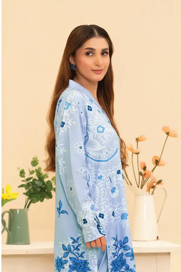 Nayab By Safa Noor is known for its carefully chosen fabrics that blend comfort with style. The front is designed with Widder Intermix Cotton Print, offering a unique visual appeal. The back features Widder Cotton Print, balancing modernity with tradition. Completing the set, the trouser comes in Widder Intermix Cotton Dyed fabric, a perfect choice for versatile styling.